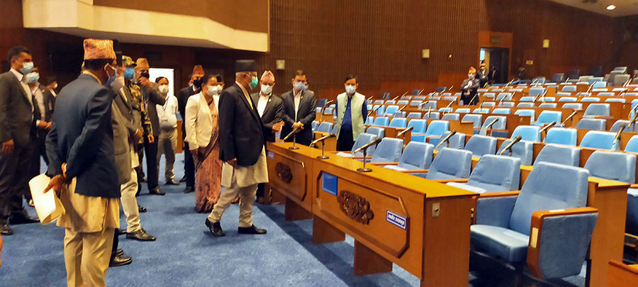 प्रधानमन्त्री केपी शर्मा ओलीले संसद बैठक कक्ष अवलोकन गरेका छन् । बजेट अधिवेशन आह्वान गर्ने तयारी भइरहेको बेला बुधबार बिहान संसद भवन पुगेर प्रधानमन्त्री ओलीले बैठक कक्ष अवलोकन गरेका हुन् ।
