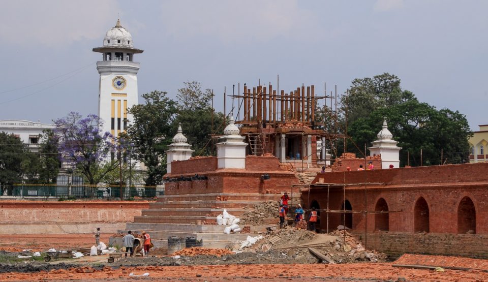 लकडाउनकै बीचमा पनि ऐतिहासिक तथा पुरातात्विक महत्वको रानीपोखारीको पुनर्निर्माणको काम चलिरहेको छ । कामदारलाई कार्यस्थलसम्म ल्याउन समस्या हुँदा पहिलेको गतिमा काम भइरहेको छैन ।