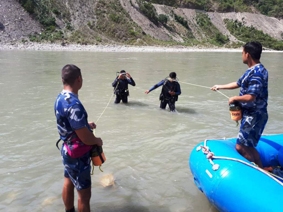 उनले भने, ‘हिमालमा हिउँ पग्लिएकाले पानीको बहाव पनि बढेको रहेछ । नदी पनि निकै धमिलो छ । पानीभित्र हेर्न मिल्दैन धमिलो पानीकै कारण खोजी कार्यमा कठिनाइ भएको छ ।’ अक्सिजनसहित अत्यावश्यक उपकरण लिएर आएका गोताखोर गहिरो तलाउमा पनि धेरैबेर डुबेर पानीभित्र अड्किएको वस्तु खोज्न सक्छन् तर नदी नै धमिलो हुँदा समस्या भएको उनीहरुको भनाइ रहेको प्रमुख बस्नेतले जानकारी दिए ।