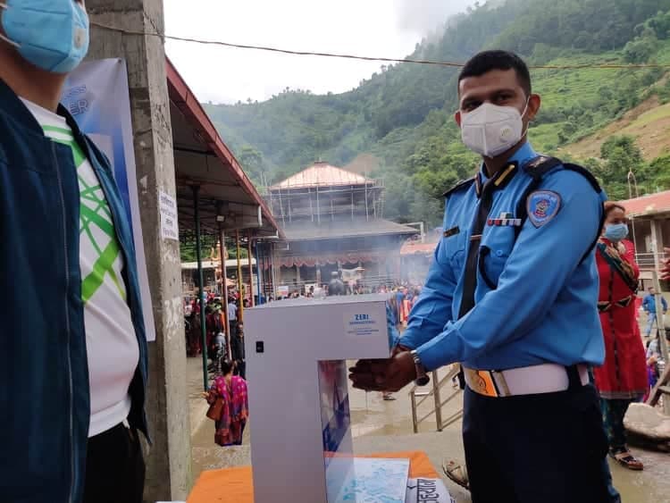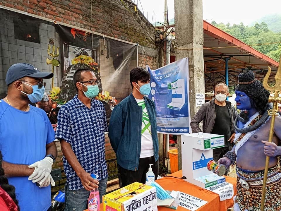 मन्दिर परिसरमै राखिएको स्वेच्छा सहयोगबाट मास्कको प्रबन्ध गरिरहेका युवाहरुको उक्त कार्यमा जेरी इन्टरनेशनलले स्यानिटाइजर उपलब्ध गराएको छ ।