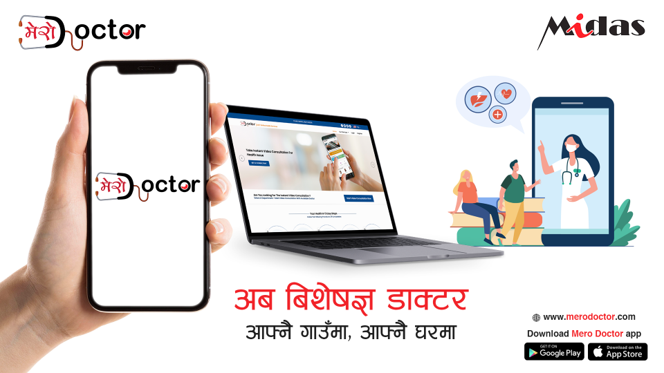 कोभिड–१९ महामारीसँगैको जारी बन्दाबन्दीले हिँडडुलमा कठिनाइ भइ धेरै बिरामीहरू आफ्नो नियमित स्वास्थ्य परिक्षणका लागि अस्पताल वा चिकित्सकको सम्पर्कमा आउन नसकेको अवस्थालाई मध्यनजर गर्दै मिदासले ‘मेरो डाक्टर’ एप मार्फत अनलाइन भिडियो परामर्श विहीवारदेखि शुरू गरेको छ ।