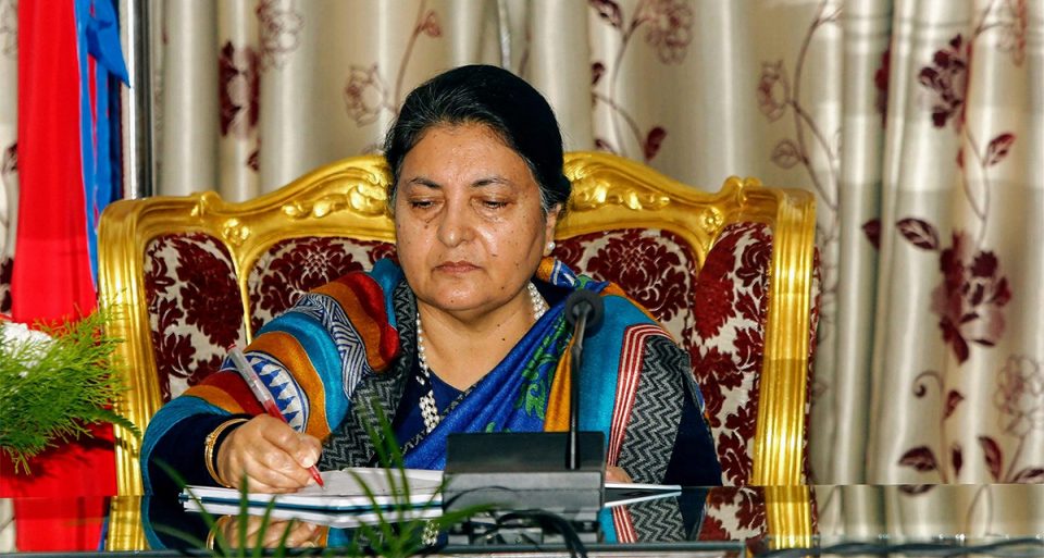 राष्ट्रपति विद्यादेवी भण्डारीद्वारा मन्त्रिपरिषदले सिफारिस गरेका तीन वटा अध्यादेश जारी गरेकी छन्। शनिबार एक विज्ञप्ति जारी गर्दै आर्थिक अध्यादेश २०७८, विनियोजन अध्यादेश २०७८ र राष्ट्र ऋण उठाउने अध्यादेश २०७८ जारी गरेकी हुन्।