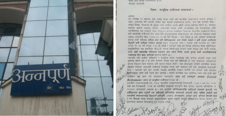 ‘यी समस्या समाधानका लागि २१ माघ २०७७ मा हामीले अन्नपूर्ण पोस्टका सम्पादकलाई अनुरोधपत्र बुझाएका थियौँ’, विज्ञप्तिमा लेखिएको छ, ‘तर, तलबभत्ताको भुक्तानीका लागि लिखित अनुरोधपत्र बुझाएका हामी श्रमजीवी पत्रकारहरूलाई उपहारस्वरुप राजीनामाका लागि दबाब दिन थालियो ।’