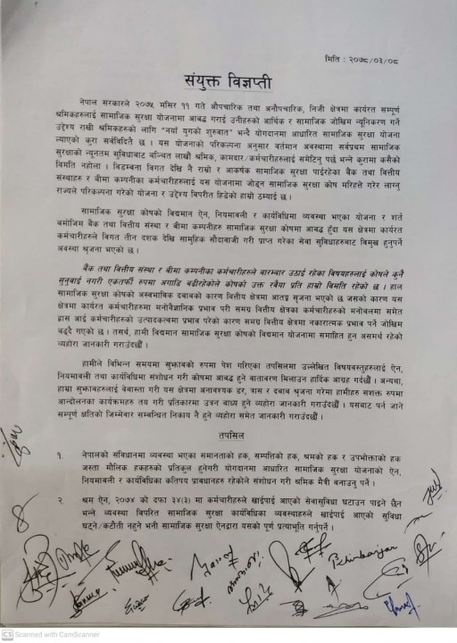 यसबाट हुने क्षतिको जिम्मेवार स्वयम सरकार नै पनि विज्ञप्तीमा उल्लेख गरिएको छ । विभिन्न २८ वटा बैंक तथा वित्तीय संस्थाका कर्मचारीहरूले उक्त विज्ञप्तीमा हस्ताक्षर गरेका छन् ।