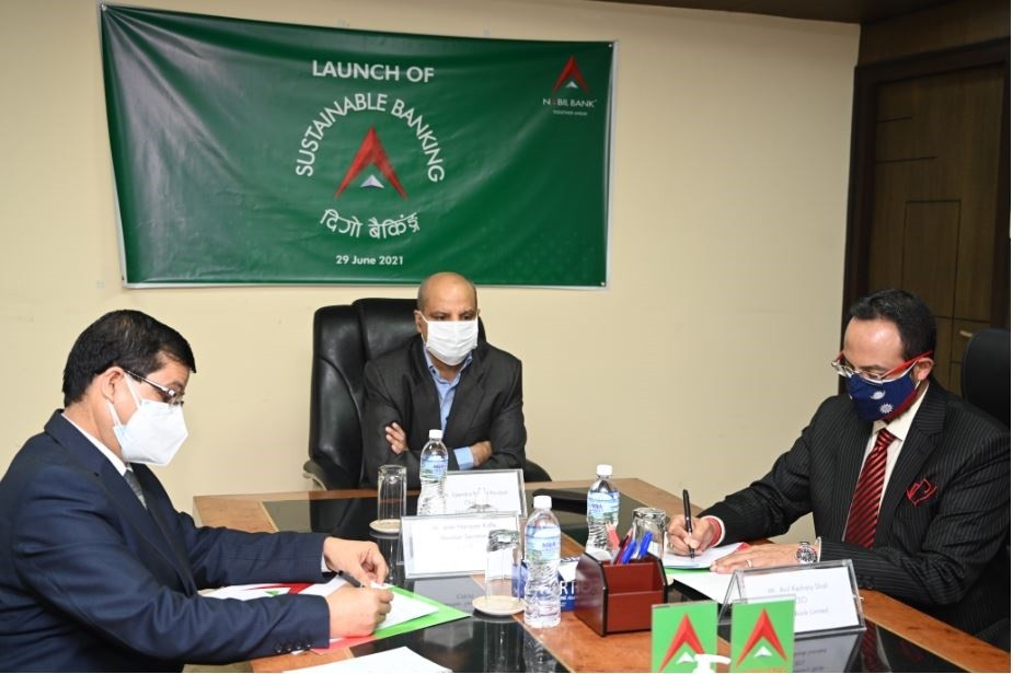 नबिल बैंकले ‘नबिल दिगो बैंकिङ’ स्थापनाको घोषणा गरेको छ । बैंकले मंगलबार एक भर्चुअल कार्यक्रममार्फत सो घोषणा गरेको हो । नबिल दिगो बैंकिङको माध्यमबाट बैंकले अहिलेसम्म बैंकिङ नगरेकाहरूलाई वित्तीय पहुँच प्रदान गर्दै देशको सबैभन्दा दुर्गम स्थानहरूमा उद्यमशिलतालाई प्रवद्र्धन गर्ने उद्देश्यअनुसार नबिल दिगो बैंकिङ स्थापनाको घोषणा गरिएको हो ।