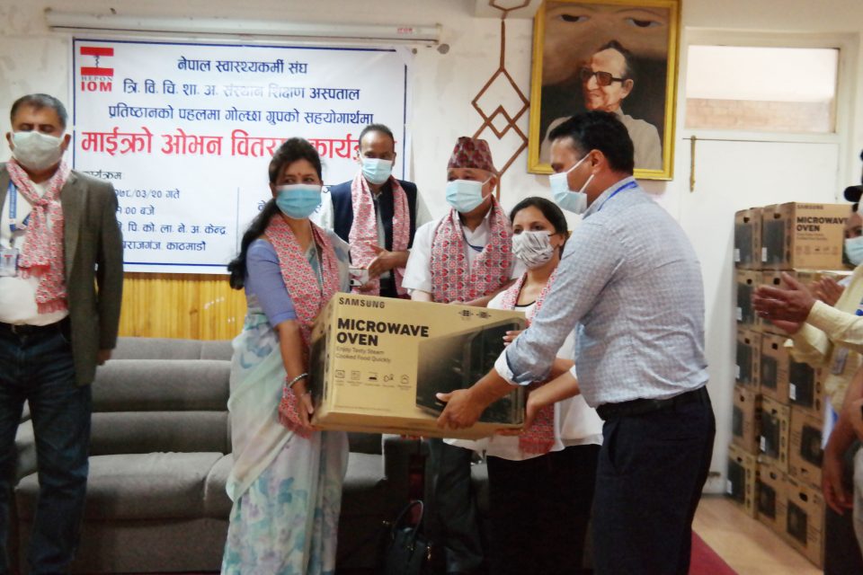 काठमाडौँ, असार २१, २०७८–गोल्छा गु्रपले आइतबार टिचिंग अस्पतालमा कोभिडका स्वास्थ्यकर्मीहरुका लागि ३० वटा सामसुङ्ग माइव्रmोवेभ ओभन सहयोग गरेको छ । गोल्छा गु्रपका निर्देशक सीमा गोल्छा ज्यूले समारोहमा त्रिभुवन विश्वविद्यालयका डीन, इन्स्टिट्युट अफ मेडिसिनका, प्रोफेसर डा. दिव्या सिंह साहलाई ओभन हस्तानतरण गर्नुभएको छ ।