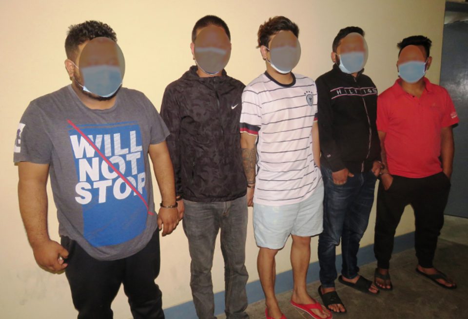 पक्राउ पर्नेमा ललितपुर महानगर ५ थसिखेल बस्ने बर्ष ३२ को दिप्जल ढुंगाना,ललितपुर २ सानेपा बस्ने बर्ष २६ को आशिष सिंह,ललितपुर महानग। ११ कोवाहाल बस्ने बर्ष ४२ को राजु महर्जन,ललितपुर महानगर १६ धापागल बस्ने बर्ष ३८ को बिनोद महर्जन र ललितपुर महानगर १२ टंगाल बस्ने बर्ष २९ को सफिर राज राजकर्णिकार रहेको ललितपुर प्रहरीले प्रेस विज्ञप्ती जारी गरि जानकारी दिएको छ ।