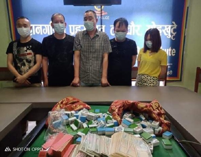 चिनियाँकै सञ्चालनमा रहेको होटल सिआओ सियाङबाट इलेक्ट्रिक जुवा खेलिरहेका एक महिलासहित ५ जना चिनियाँ नागरिक १ लाख २३ हजार रूपैयाँ नगदसहित समातिएका हुन् ।