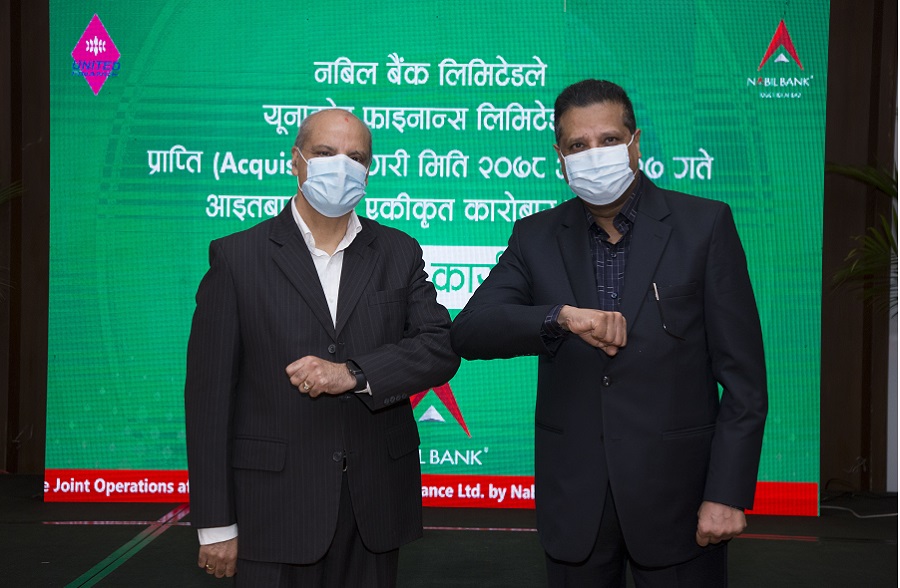 नबिल बैंकले युनाइटेड फाइनान्सलाई एक्विजेशन (प्राप्ती) गर्ने प्रक्रिया पूरा भएको छ । प्राप्ती प्रक्रिया पूरा भएर आजदेखि एकीकृत कारोबार सुरु भएको छ ।