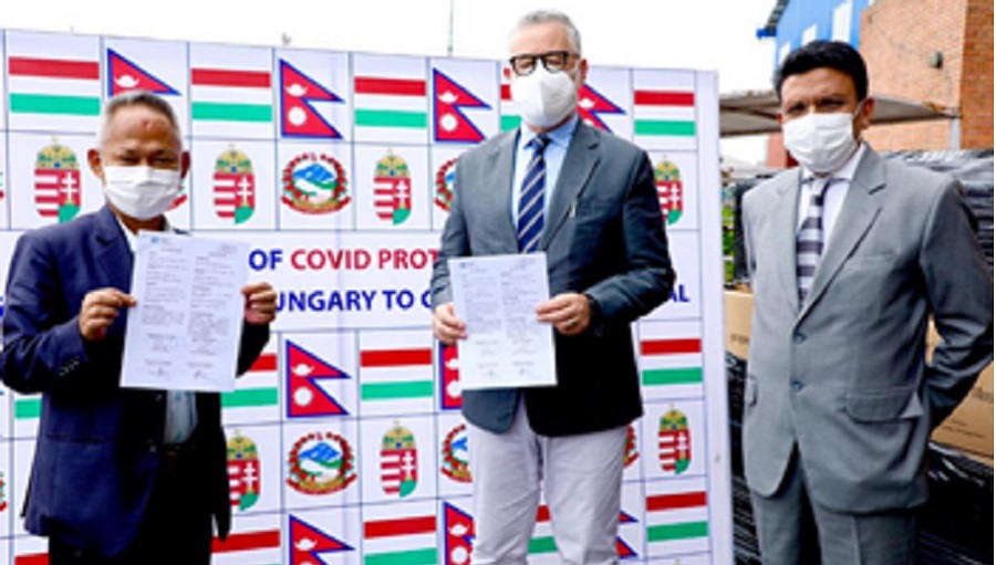 काठमाडौं । हंगेरी सरकारले नेपाल सरकारलाई कोभिडवरुद्ध लड्न स्वास्थ्य सामाग्री हस्तान्तरण गरेका छ । हंगेरी गणतन्त्रका राजदुत आन्द्रेस किरालीले स्वास्थ्य मन्त्रालयका सचिव डा. रोशन पोखरेललाई उक्त स्वास्थ्य सामाग्री हस्तान्तरण गरेका थिए ।