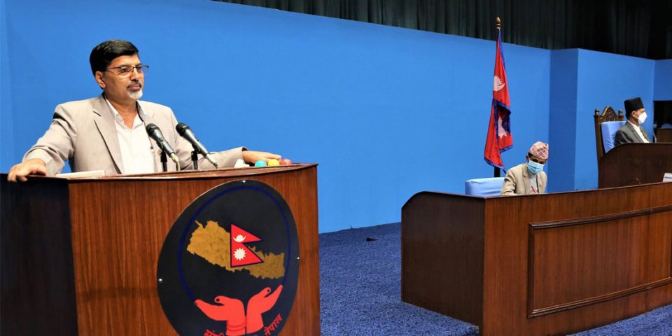 काठमाडौं । अर्थमन्त्री जनार्दन शर्माले देशको वर्तमान आर्थिक अवस्थाको समिक्षासहितको ‘श्वेतपत्र’ प्रतिनिधिसभासमक्ष प्रस्तुत गरेका छन् । उनको श्वेतपत्रमा आर्थिक वर्ष २०७४/७४ को श्वेतपत्र, आर्थिक वर्ष २०७७/७८ को आर्थिक सर्वेक्षण तथा बजेट र चालू आर्थिक वर्षको बजेटबीच तुलना गरिएको छ ।