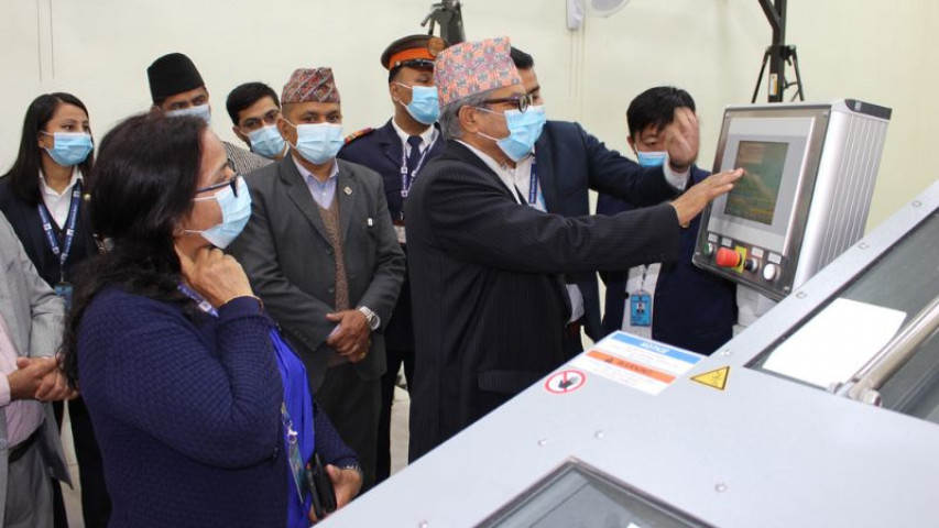 मेसिन सञ्चालनको स्वीच अन गरेर नेपाल राष्ट्र बैंकका गभर्नर महाप्रसाद अधिकारीले एक समारोहकाबीच शुभारम्भ गरे।